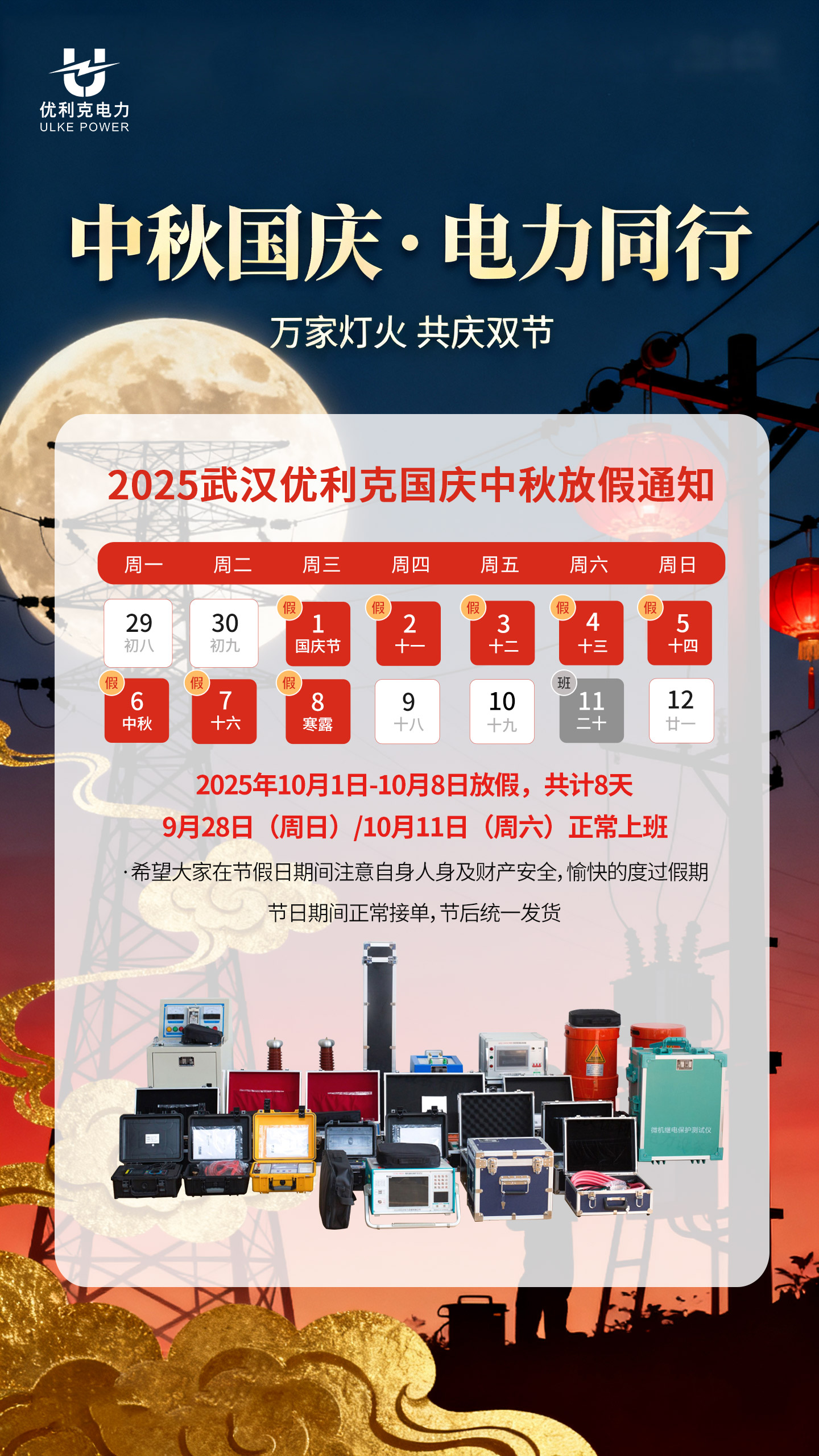 武漢優利克電力2025國慶中秋放假通知發布: 2025-09-26  瀏覽: 332 次